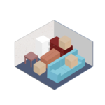 It fits the contents of a full bedroom and items such as mattress sets, sofas, chests of drawers, bookcases, and desks.
